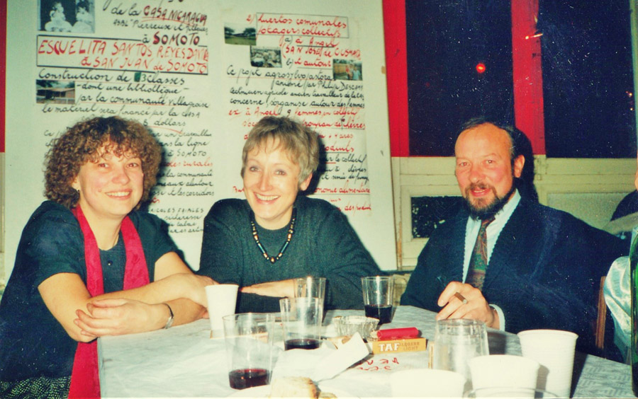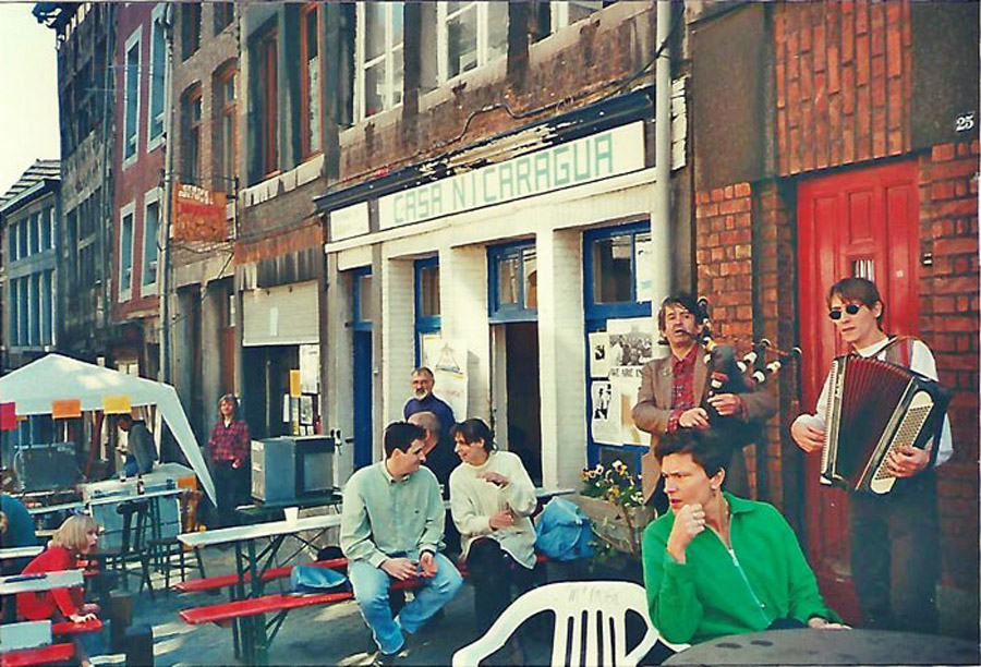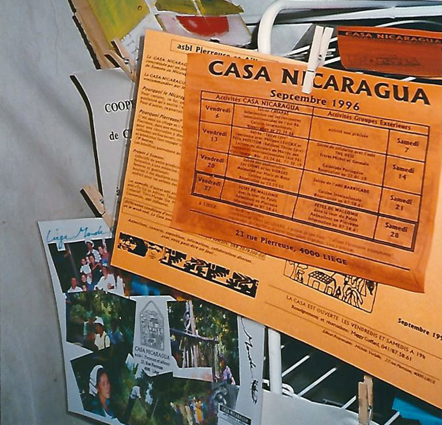 Commençait la folle aventure solidaire collective: l’occupation et l’auto-rénovation du 23 en Pierreuse s’inscrivant dans la lutte contre la destruction des maisons du bas de la rue, ébranlées par le tremblement de terre de 1983 ainsi que l’ouverture d’une table d’hôte, un petit resto, cuisine du monde, dont les bénéfices aideraient à la reconstruction d’un Nicaragua ravagé par une guerre civile, les suites d’un tremblement de terre et menacé, attaqué par les ennemis de sa révolution sandiniste, progressiste. « Quartier menacé, pays menacé » en Pierreuse et ailleurs.